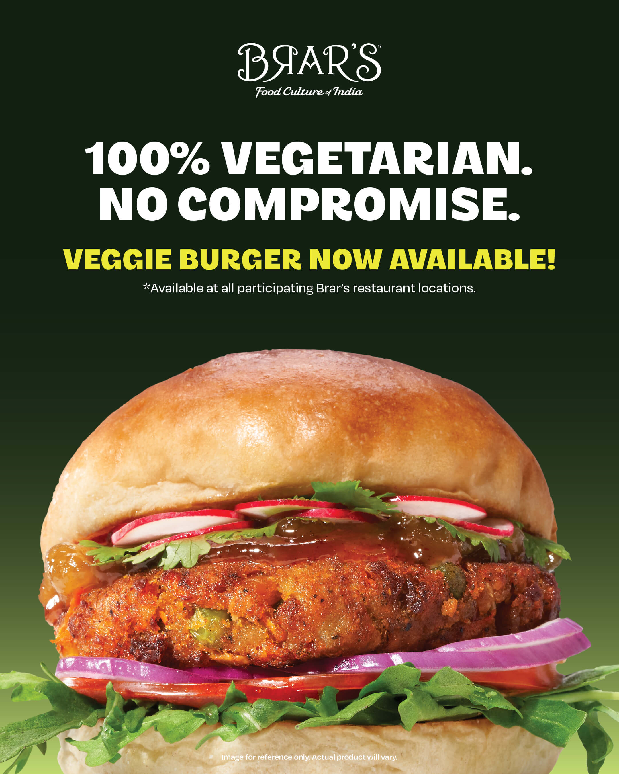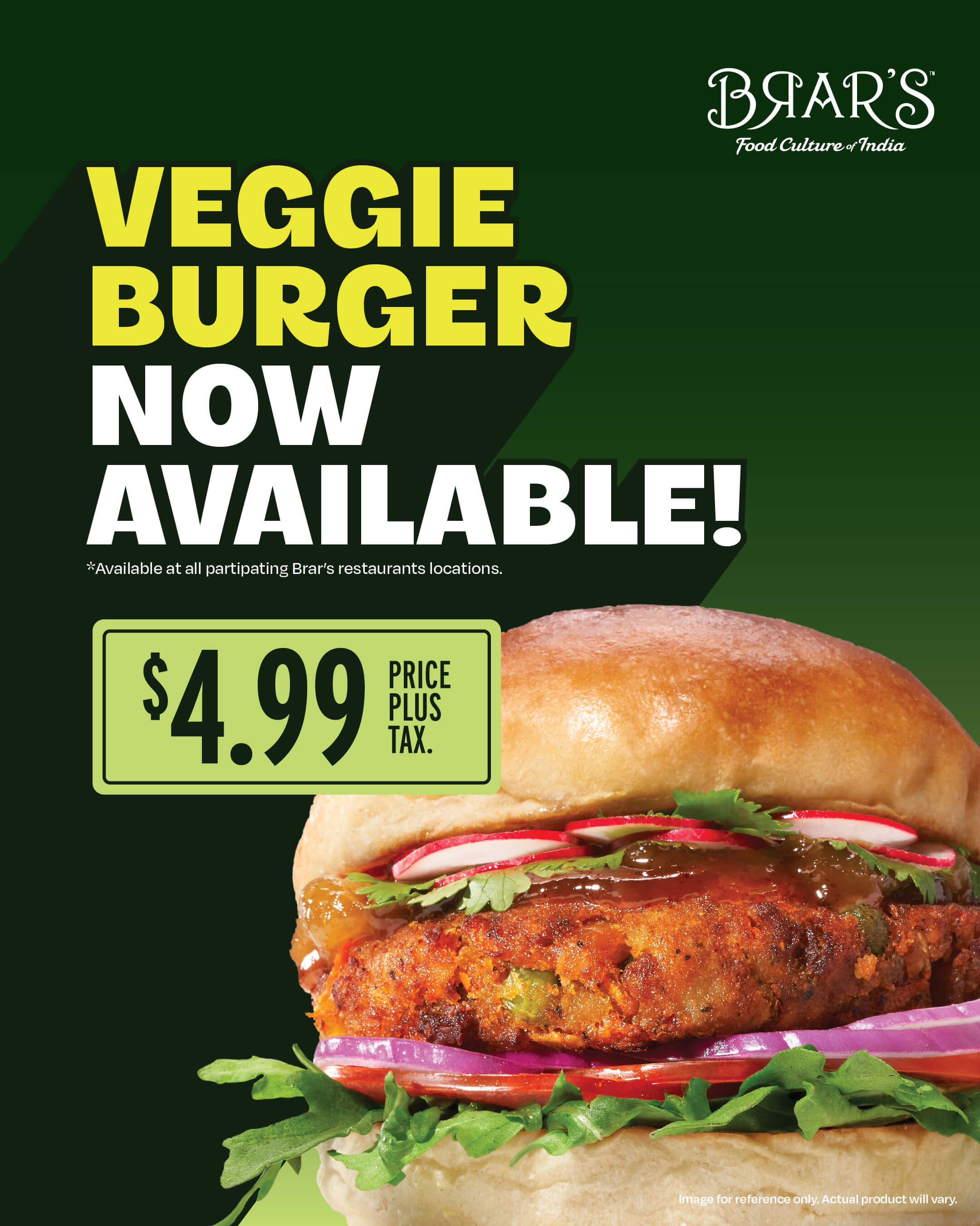 The new Brar’s Veggie Burger is now available at all Brar’s locations and on major delivery apps—a wholesome, delicious, and affordable option for anyone who loves great food.